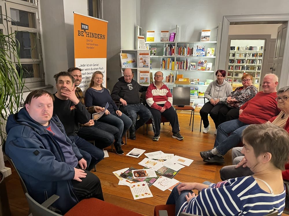 inklusiven Bibliothek wurde der Tisch weggerückt und die Sitzecke zu einem Stuhlkreis